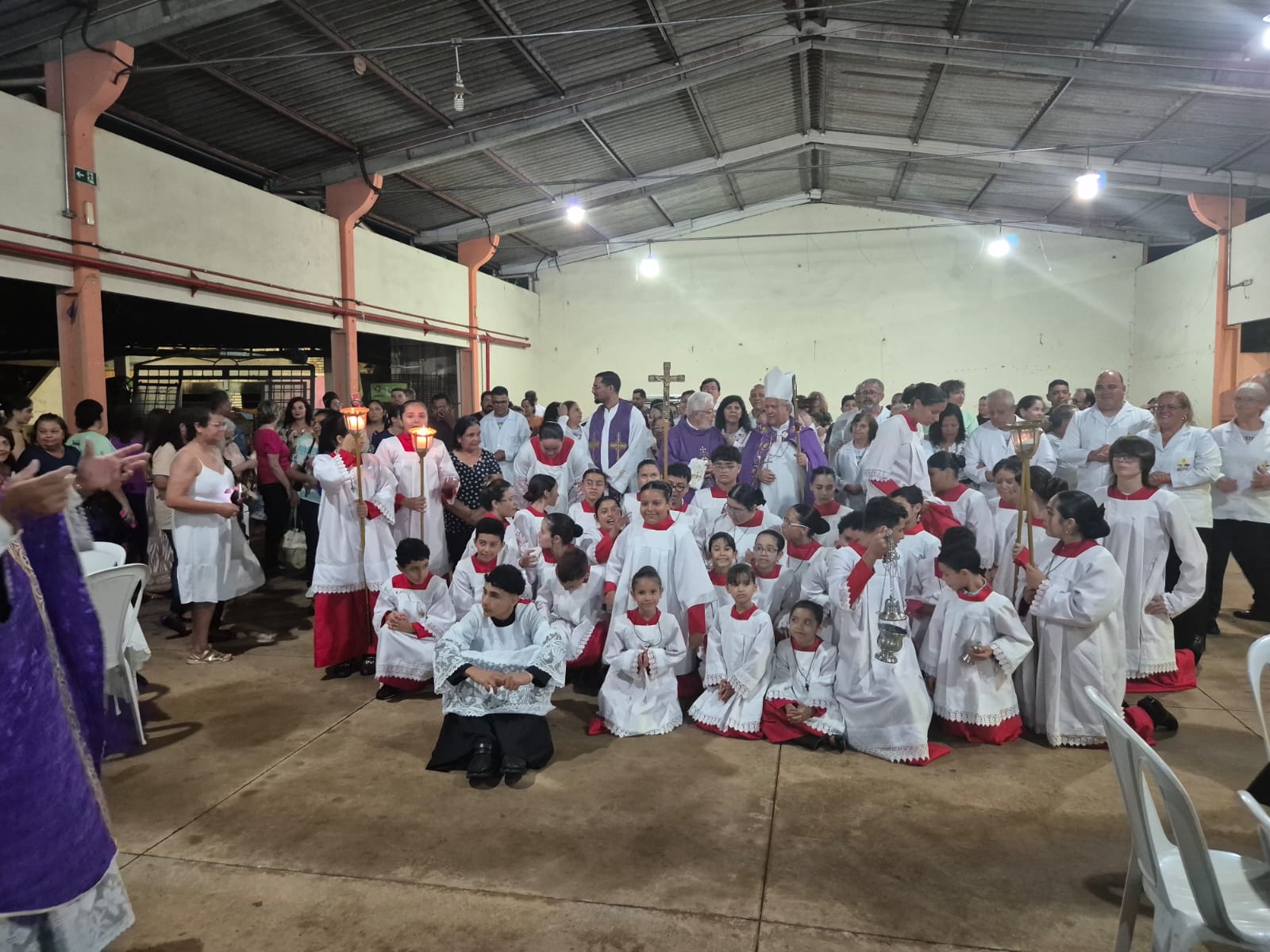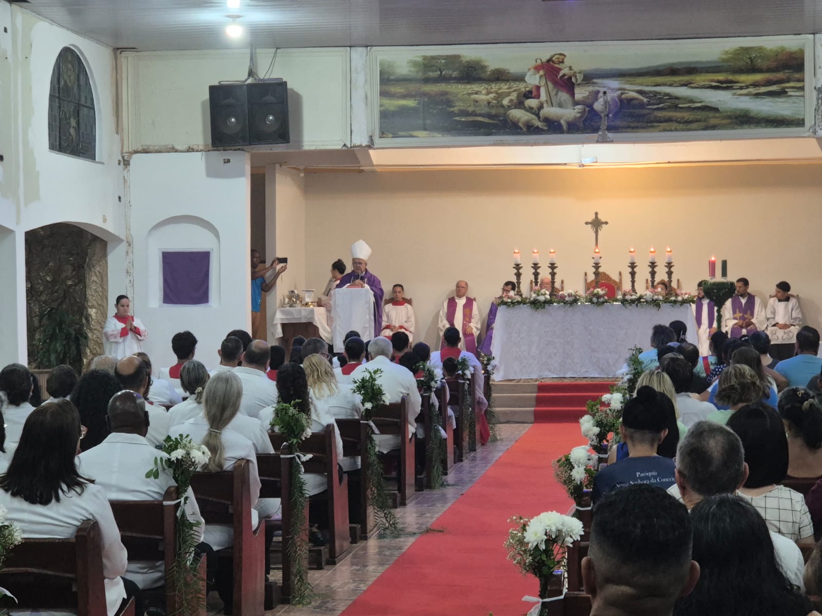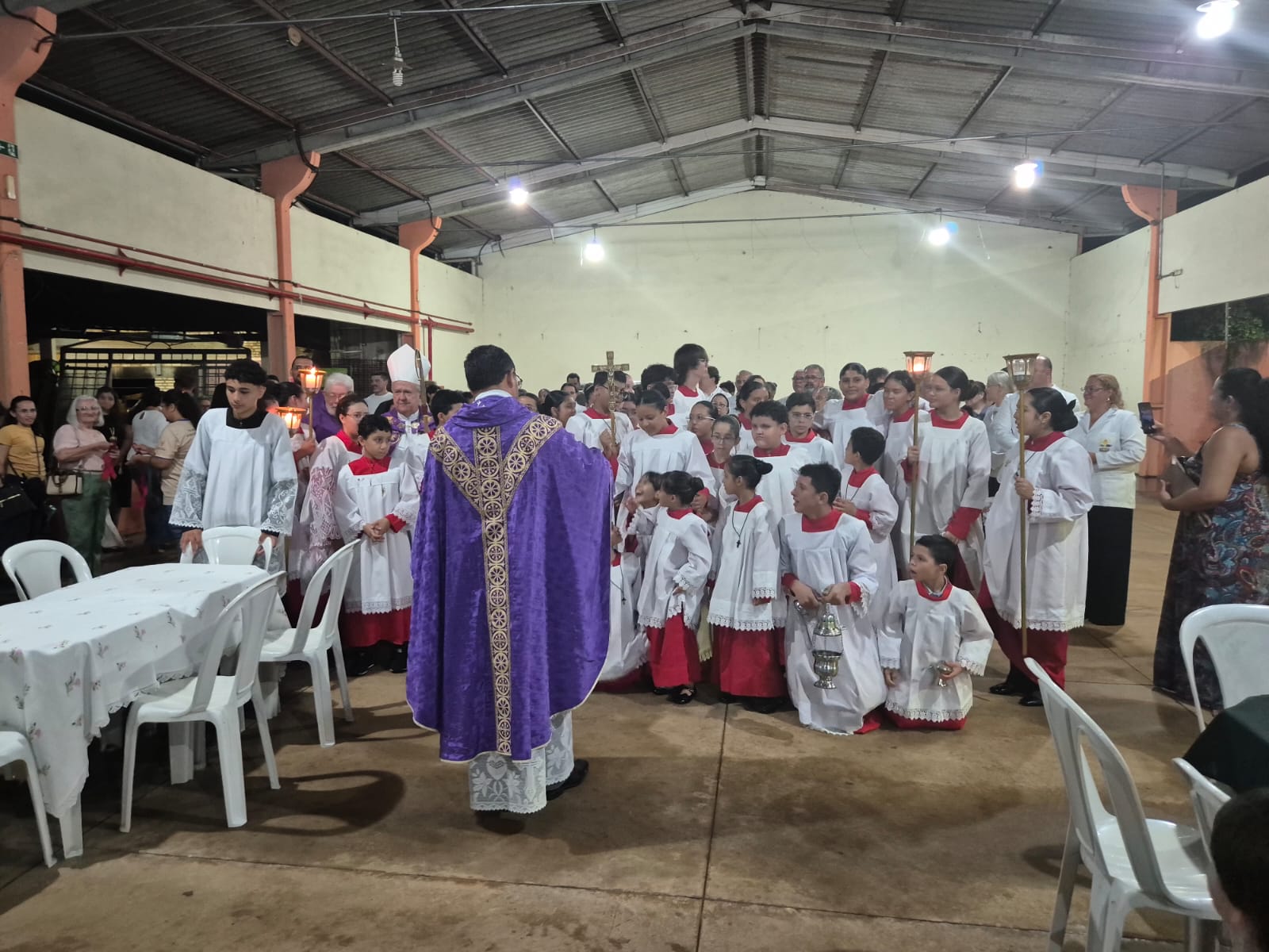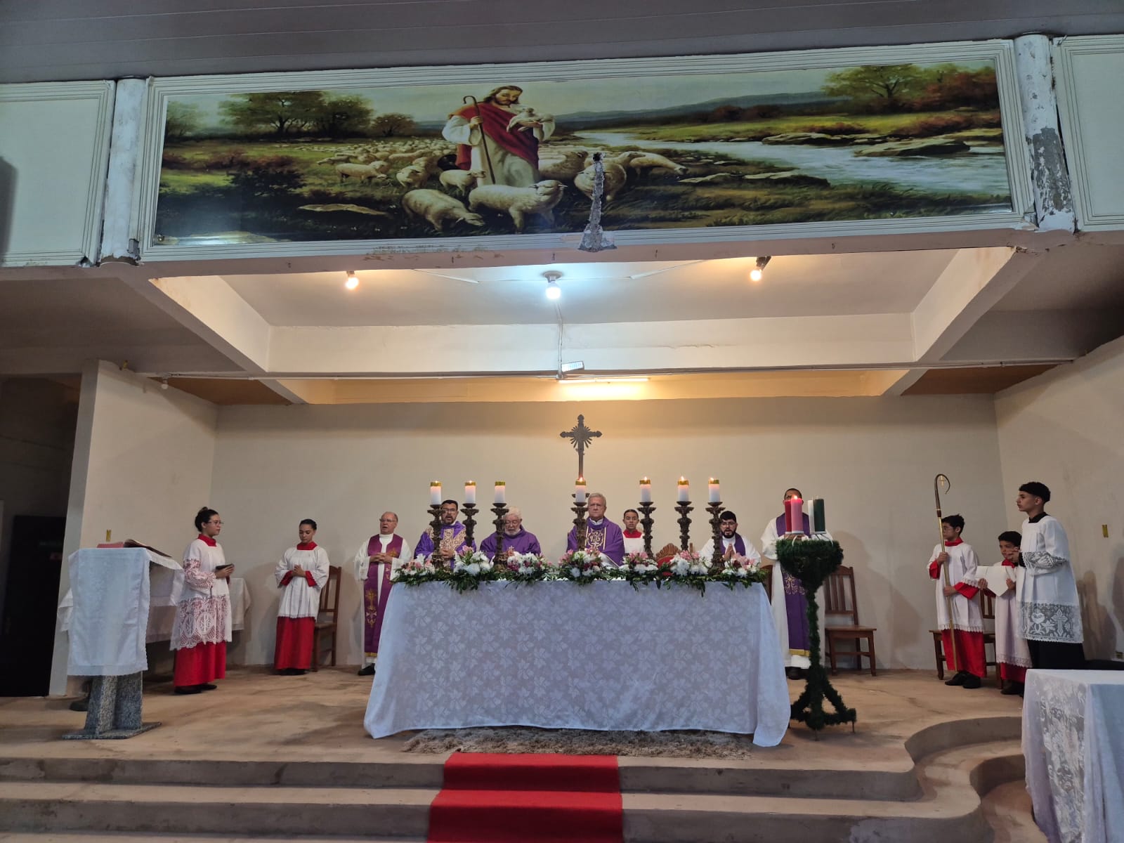 Localizada na Forania Sudoeste e fundada no ano 2000, a paróquia conta com as comunidades Maria Mãe do Redentor, Nossa Senhora do Caacupê e Sagrada Família de Nazaré. Graças aos esforços e generosidade dos fieis dizimistas, o templo matriz está sendo reformado e ampliado. Representantes dos conselhos paroquiais, MECEss, servidores do santo altar, ministério de música e o bom povo de Deus compareceram, apesar da forte chuva.