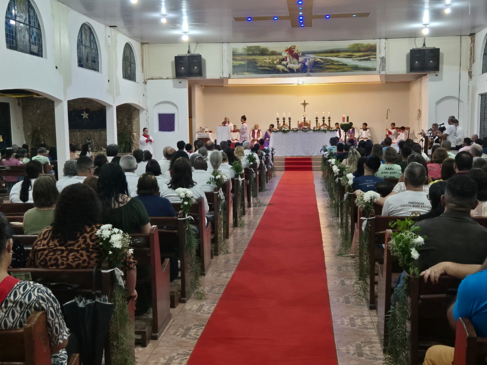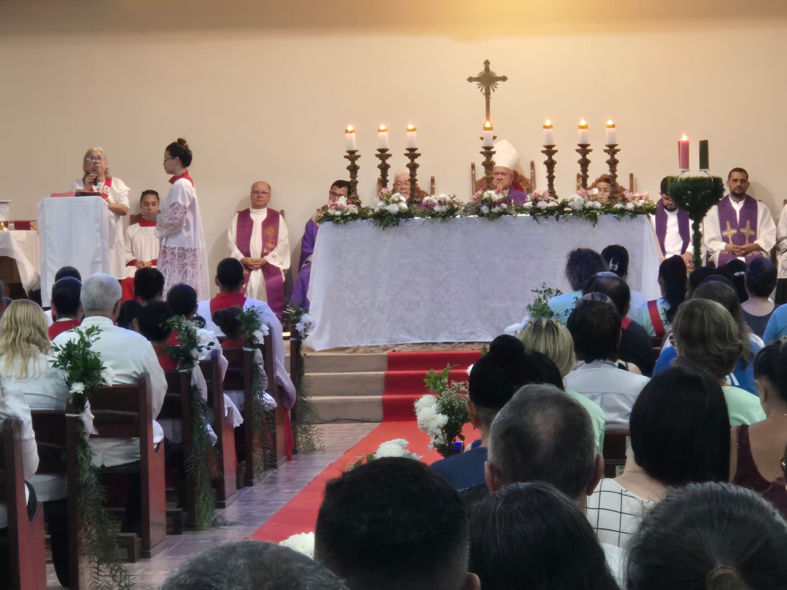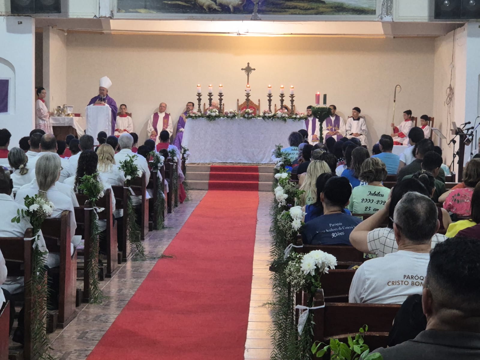 Localizada na Forania Sudoeste e fundada no ano 2000, a paróquia conta com as comunidades Maria Mãe do Redentor, Nossa Senhora do Caacupê e Sagrada Família de Nazaré. Graças aos esforços e generosidade dos fieis dizimistas, o templo matriz está sendo reformado e ampliado. Representantes dos conselhos paroquiais, MECEss, servidores do santo altar, ministério de música e o bom povo de Deus compareceram, apesar da forte chuva.