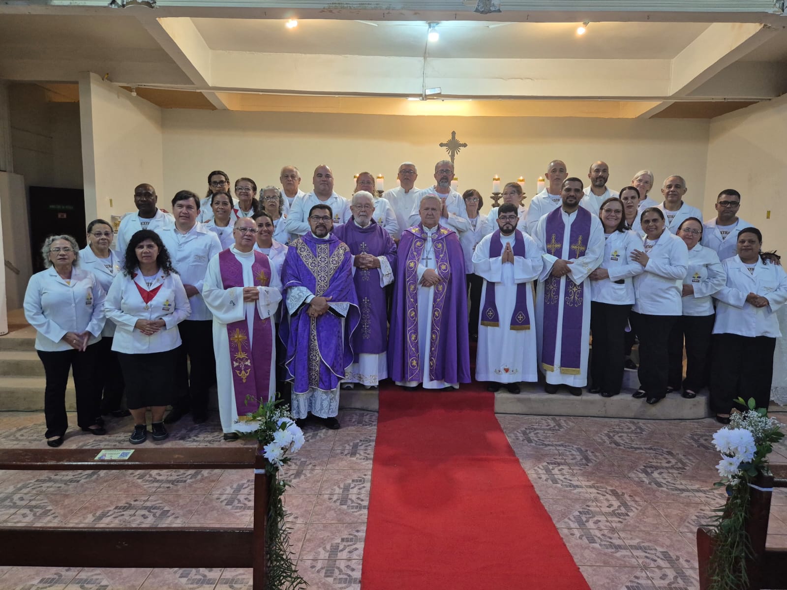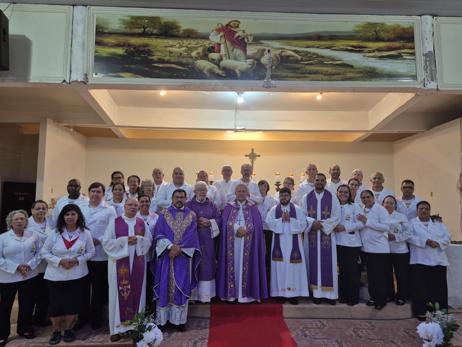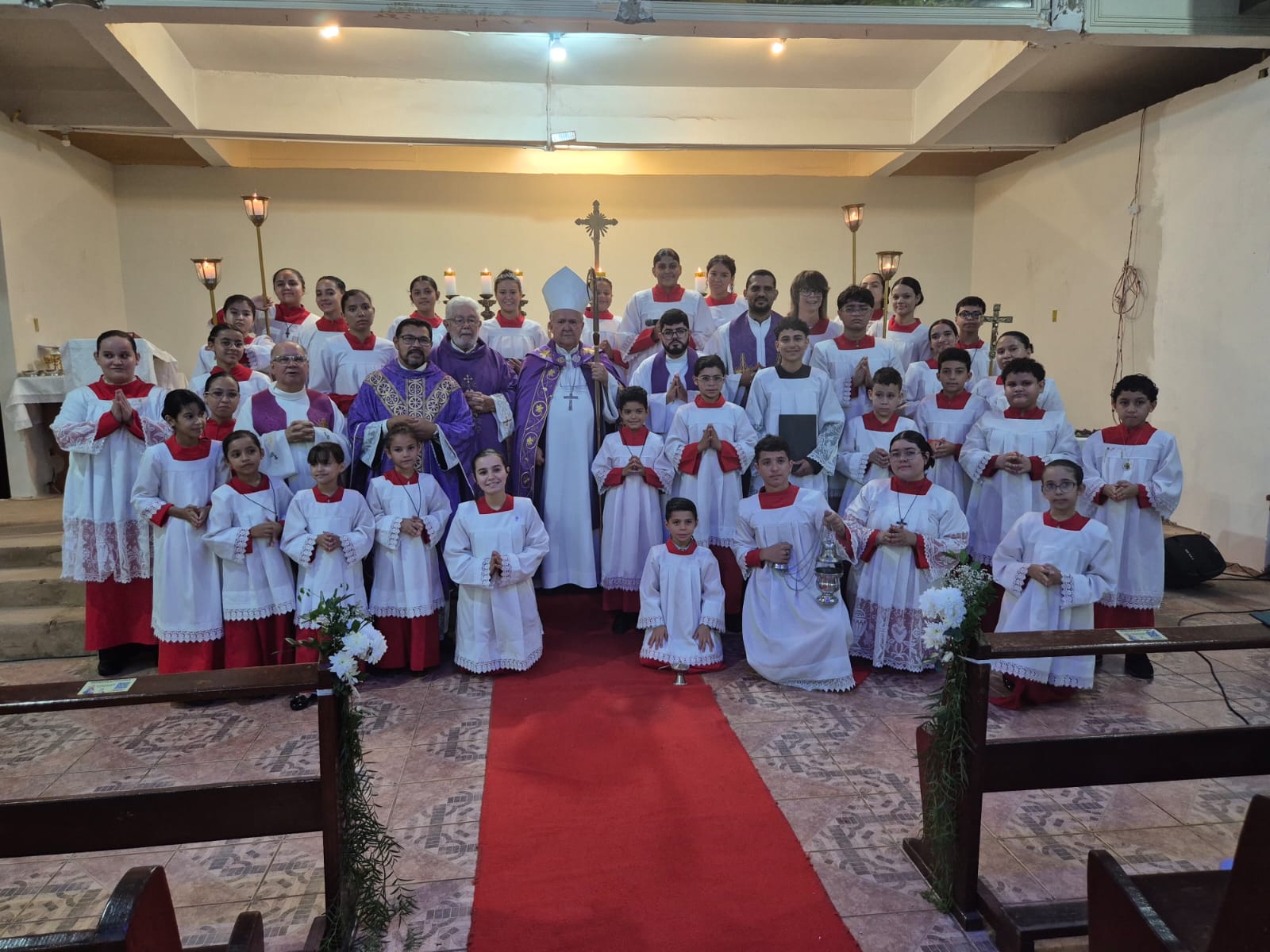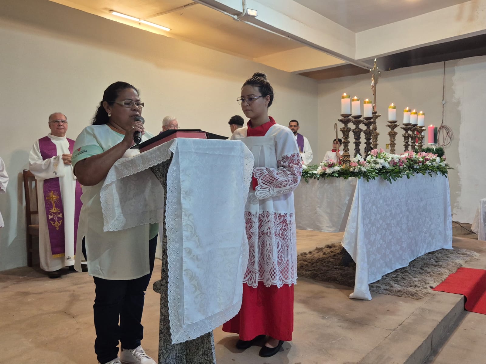 Localizada na Forania Sudoeste e fundada no ano 2000, a paróquia conta com as comunidades Maria Mãe do Redentor, Nossa Senhora do Caacupê e Sagrada Família de Nazaré. Graças aos esforços e generosidade dos fieis dizimistas, o templo matriz está sendo reformado e ampliado. Representantes dos conselhos paroquiais, MECEss, servidores do santo altar, ministério de música e o bom povo de Deus compareceram, apesar da forte chuva.