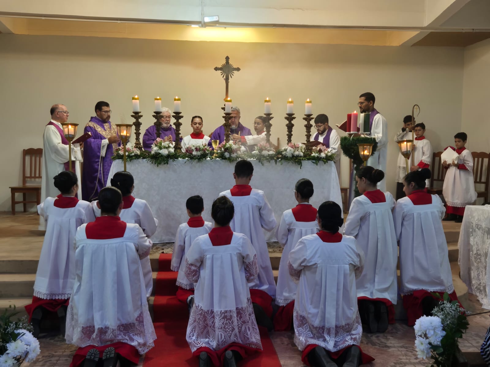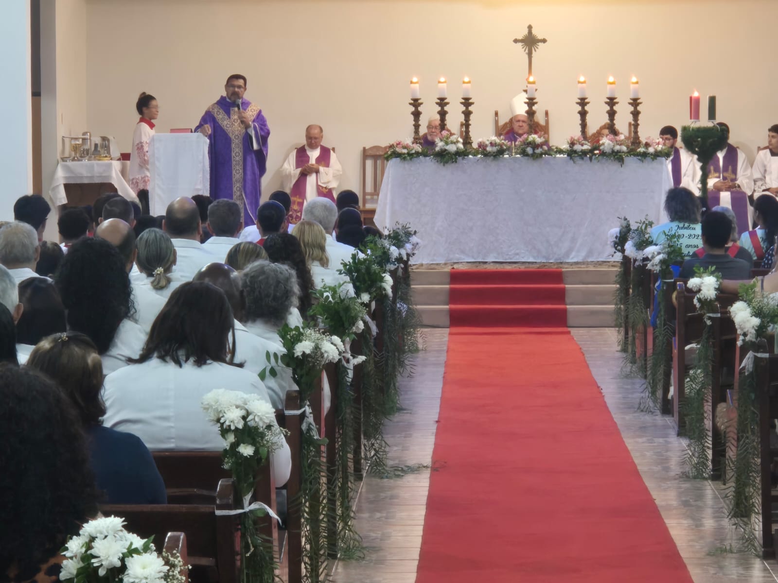 Na noite de segunda-feira, 01/12, às 20h, foi celebrada a Santa Missa de Ação de Graças pelo Jubileu de Prata da Paróquia Cristo Bom Pastor, presidida por Dom Dimas Lara Barbosa e concelebrada pelos padres Miguel Ferreira, pároco, Pedro Hélio de Oliveira, CSsR, Braitner de Azevedo Silva, CSsR e Joanderson Ferreira, PODP, e assistida pelo diácono permanente Pedro Rodrigues.