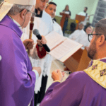 “Querido povo de Deus e da Paróquia São Pedro Apóstolo. Com o coração cheio de gratidão e esperança, inicio hoje este novo capítulo da minha vida sacerdotal junto de vocês. Antes de tudo, quero dirigir uma saudação fraterna e respeitosa ao nosso pastor diocesano, Dom Dimas, a quem acolhemos com alegria entre nós. Muito obrigado, Dom Dimas, pela confiança depositada em mim ao me confiar esta comunidade. Saúde também com carinho os padres aqui presentes, irmãos no sacerdócio, companheiros de caminhada e de missão. A presença de vocês manifesta a beleza da comunhão presbiteral. Hoje eu não chego apenas a um novo lugar, eu adentro uma história. Uma história feita de fé, de comunidades que se reuniram para celebrar, de pessoas que doaram suas vidas pela Igreja. Esta caminhada ganha ainda mais significado quando recordamos que neste ano celebraremos seu Jubileu de Prata, em 30/11. Que possamos, juntos, ser uma Igreja que acolhe, que consola, que levanta quem caiu, que anuncia com alegria o Evangelho. Uma Igreja onde cada pessoa se sinta em casa, onde ninguém é estranho, onde todos encontrem espaço para viver e testemunhar a fé. Que São Pedro Apóstolo, nosso padroeiro, nos inspire com sua coragem, sua fidelidade e seu amor por Cristo. Que ele nos ajude a permanecer firmes na fé e unidos na missão. Conto com as orações de vocês. E desde já, saibam: eu também rezo por cada um desta comunidade. Caminhemos com fé, com esperança e com amor.”